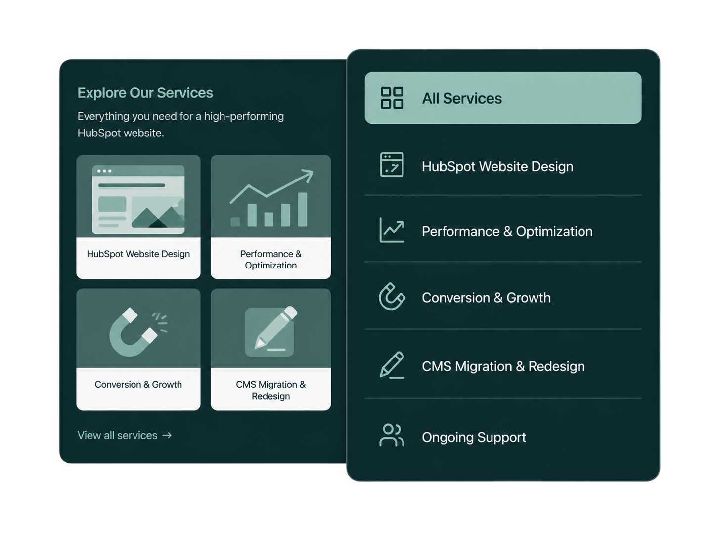 We design and develop HubSpot CMS websites that load faster, convert better, and keep your marketing team in control.